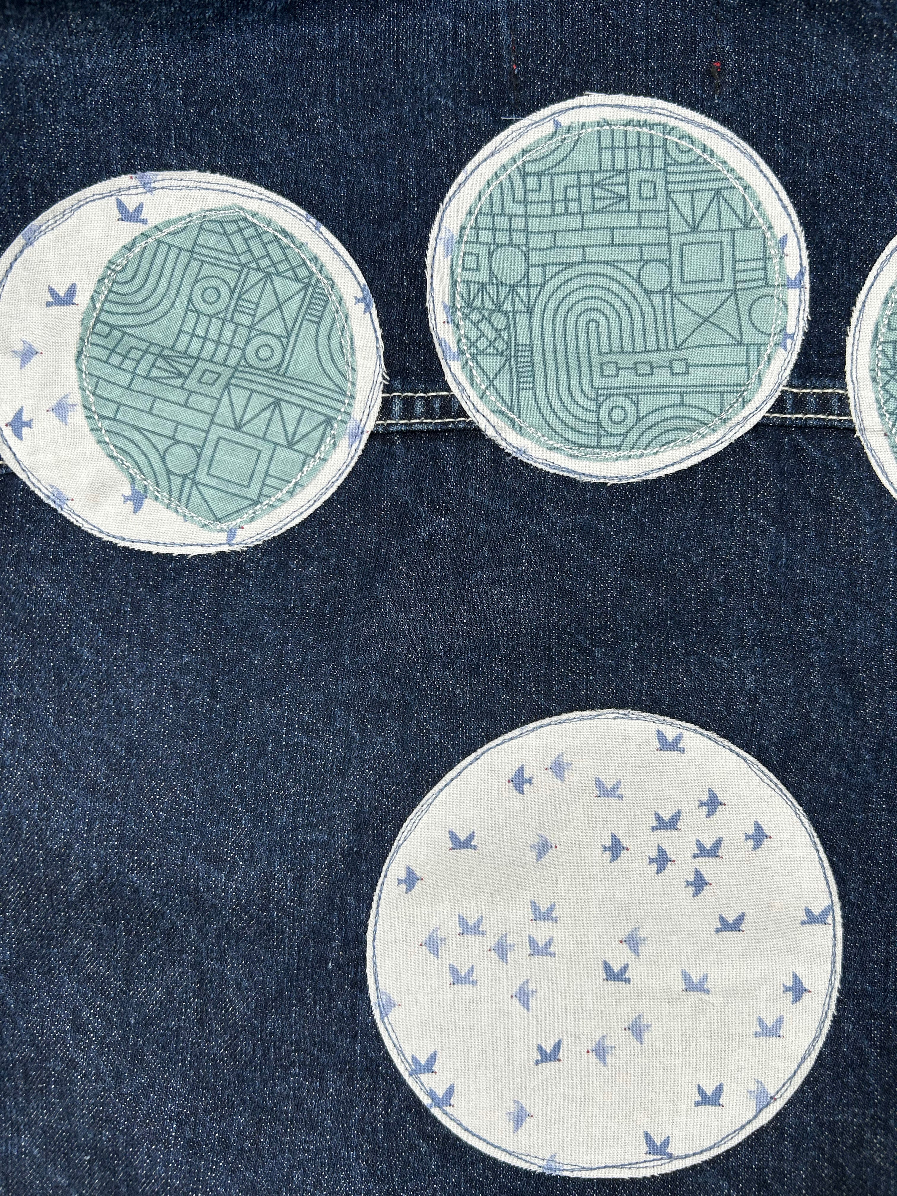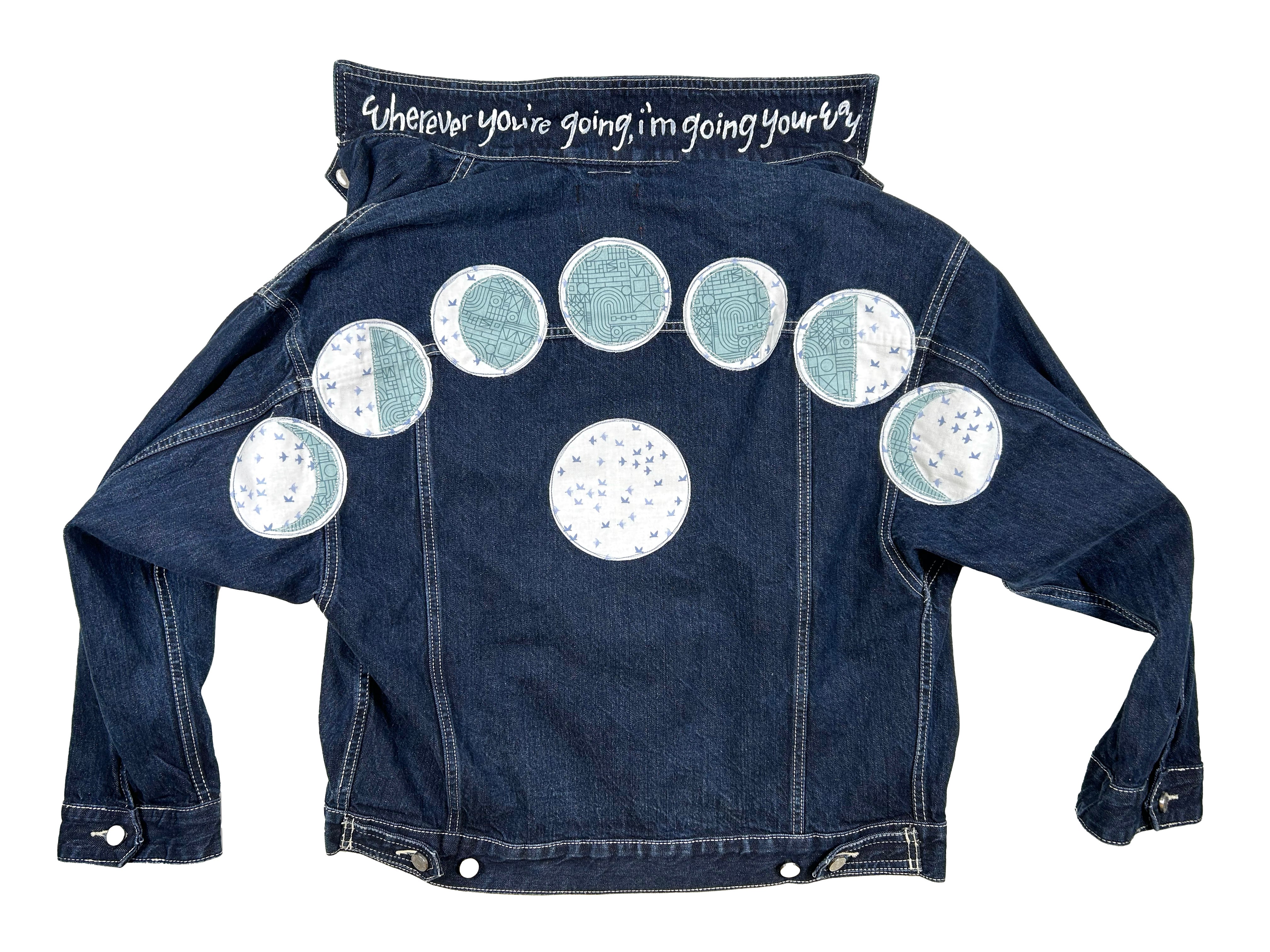 unisex machine appliquéd upcycled denim jacket: i'm going your way, moon phases