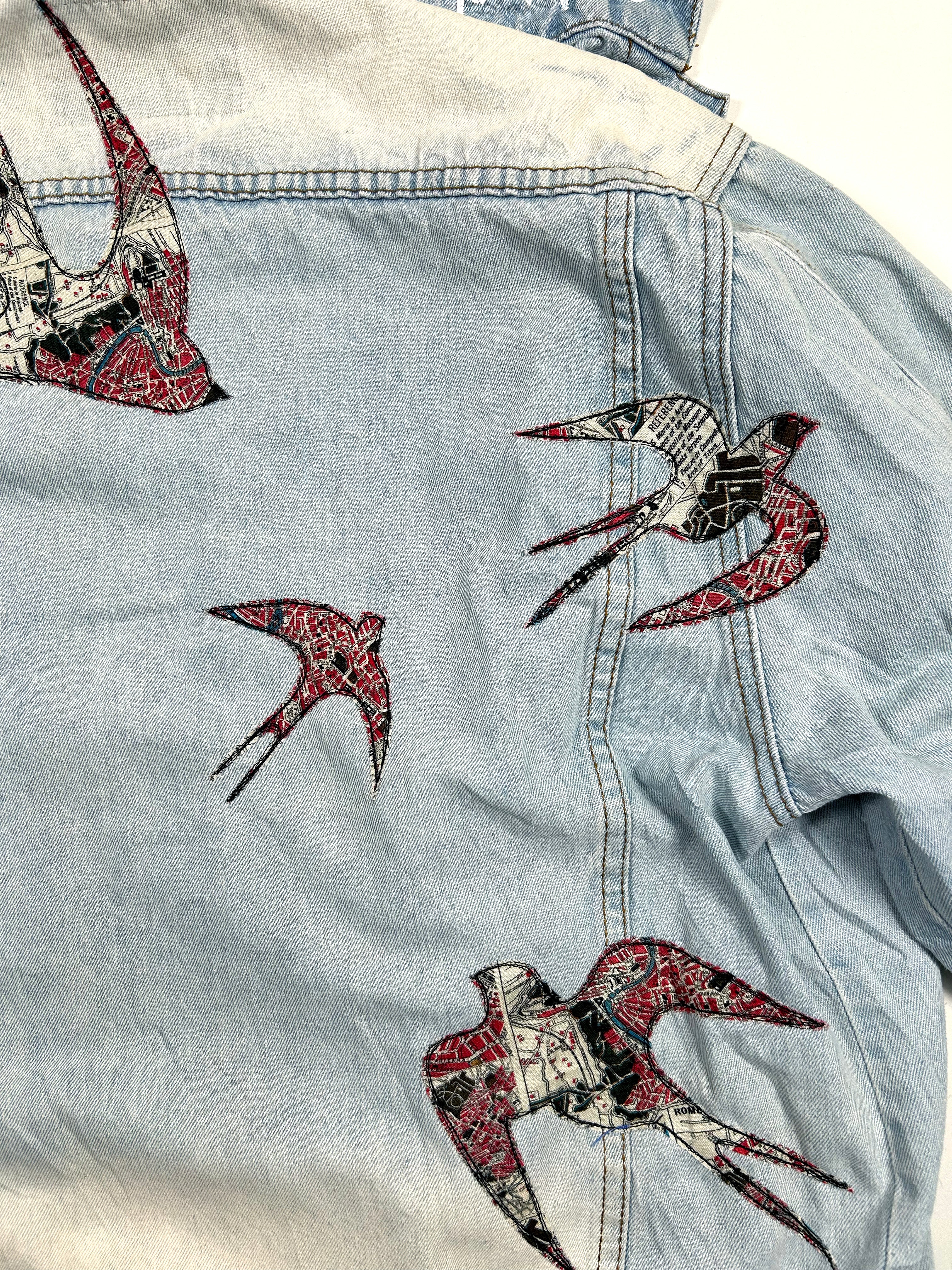 unisex machine appliquéd upcycled denim shirt jacket: sparrows