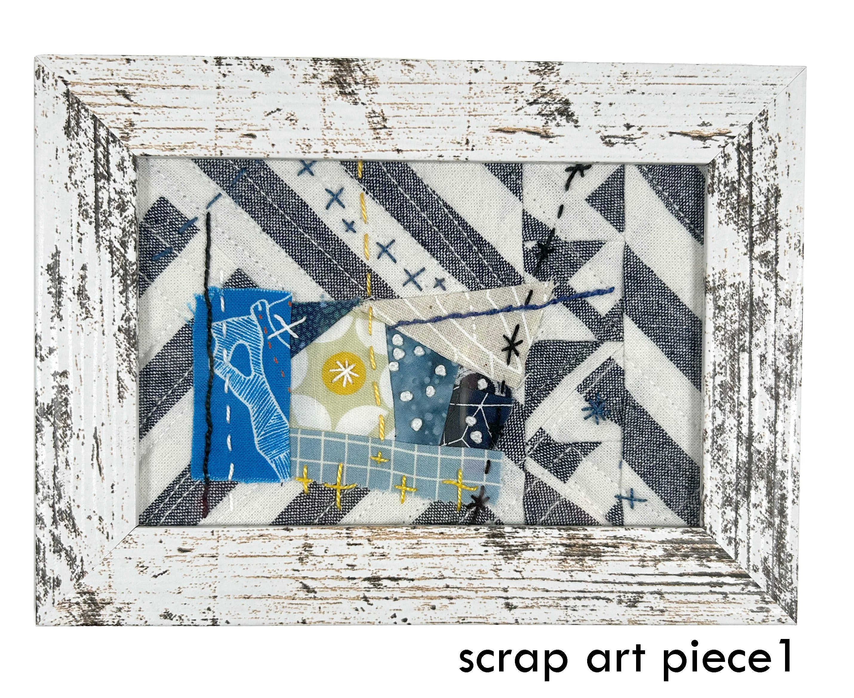 scrappy embroidered textile art: white frame