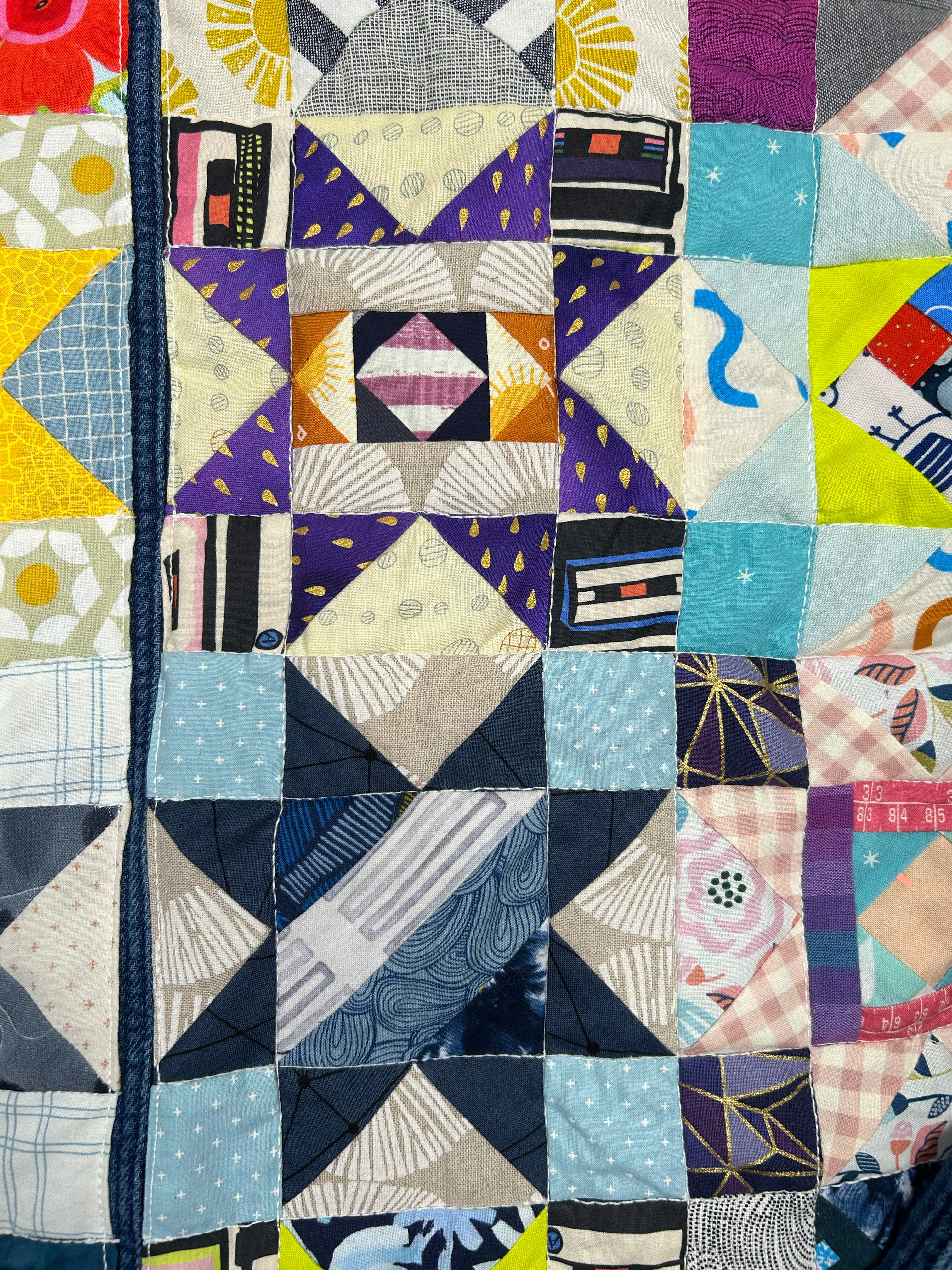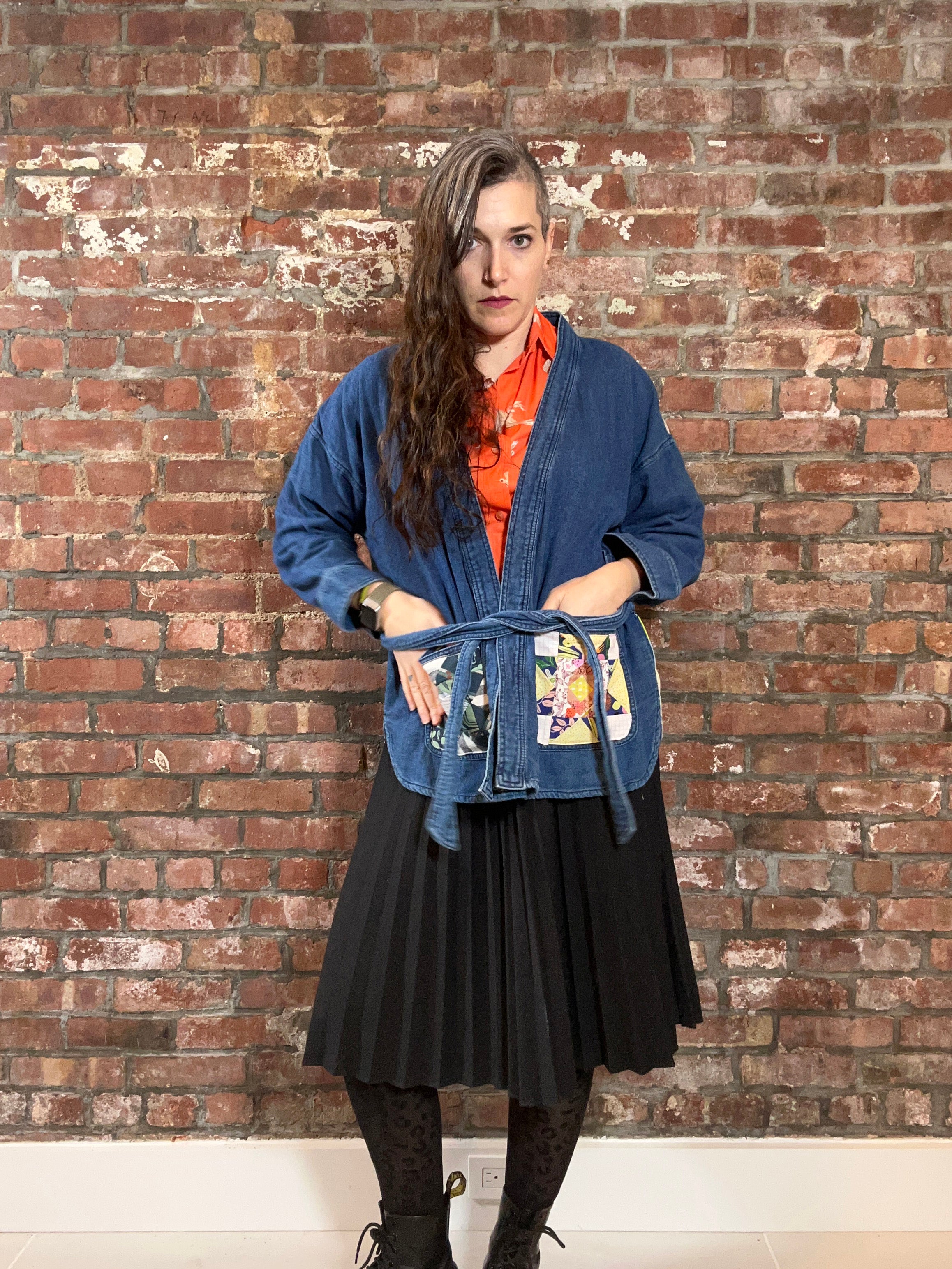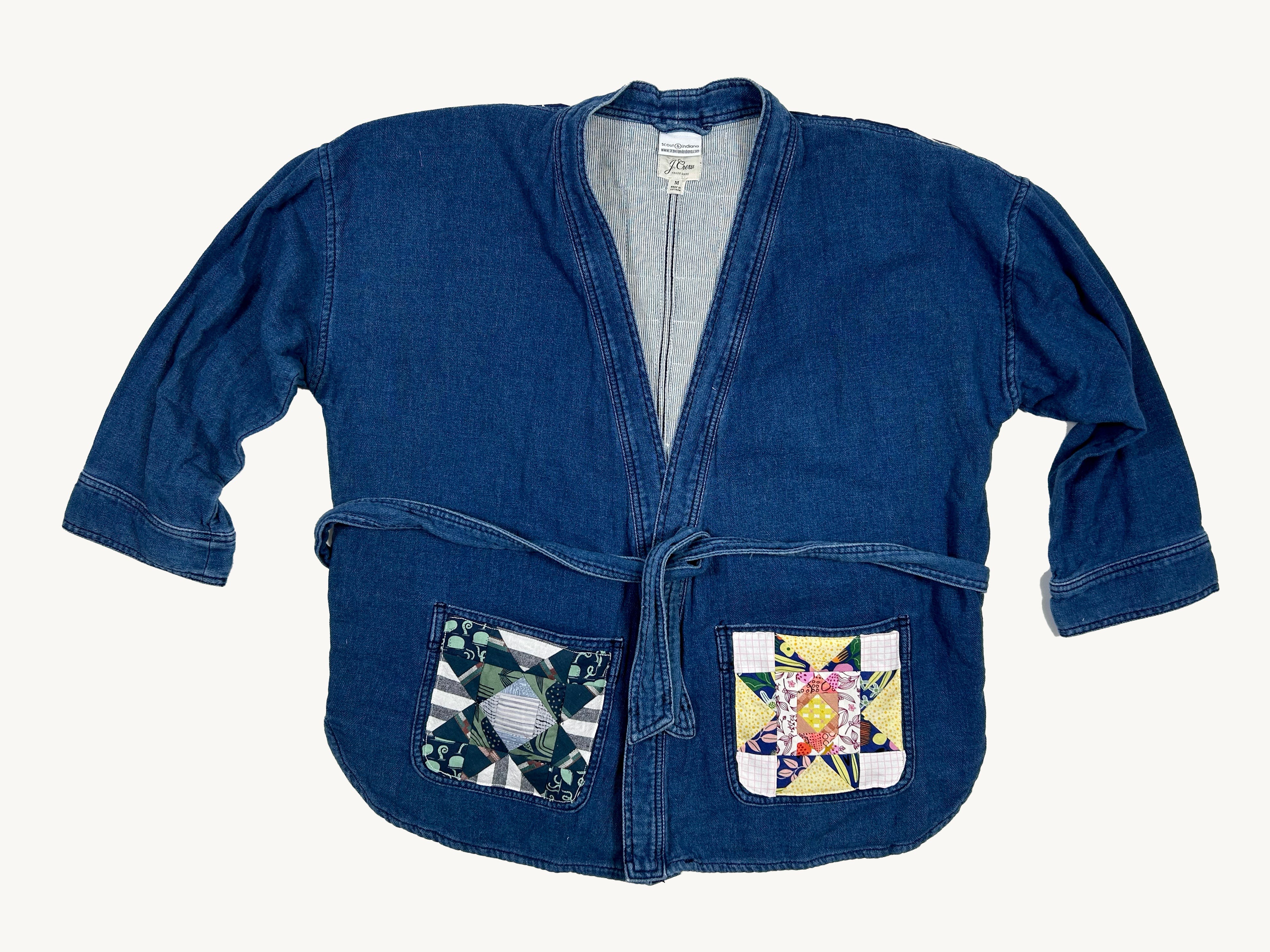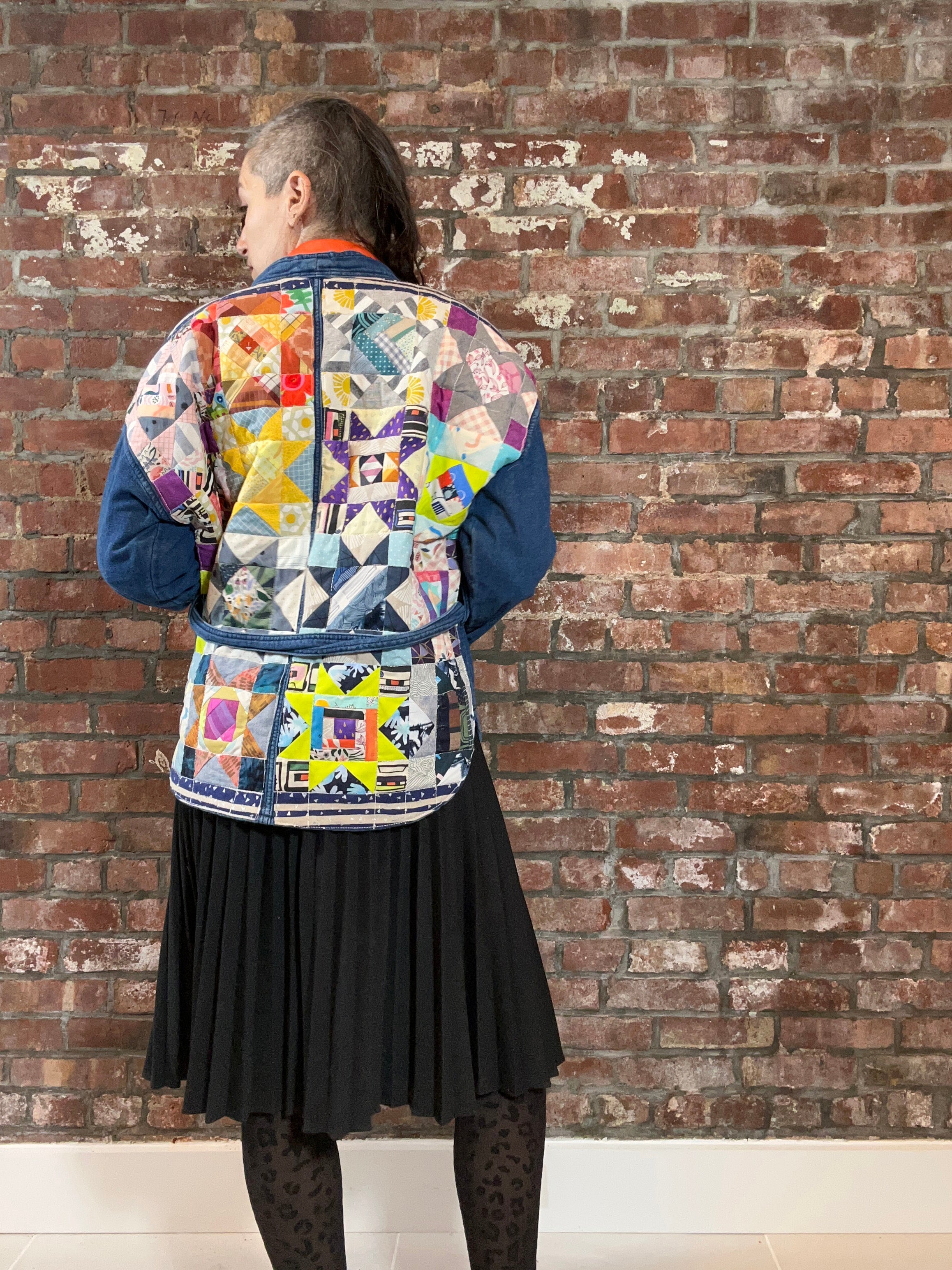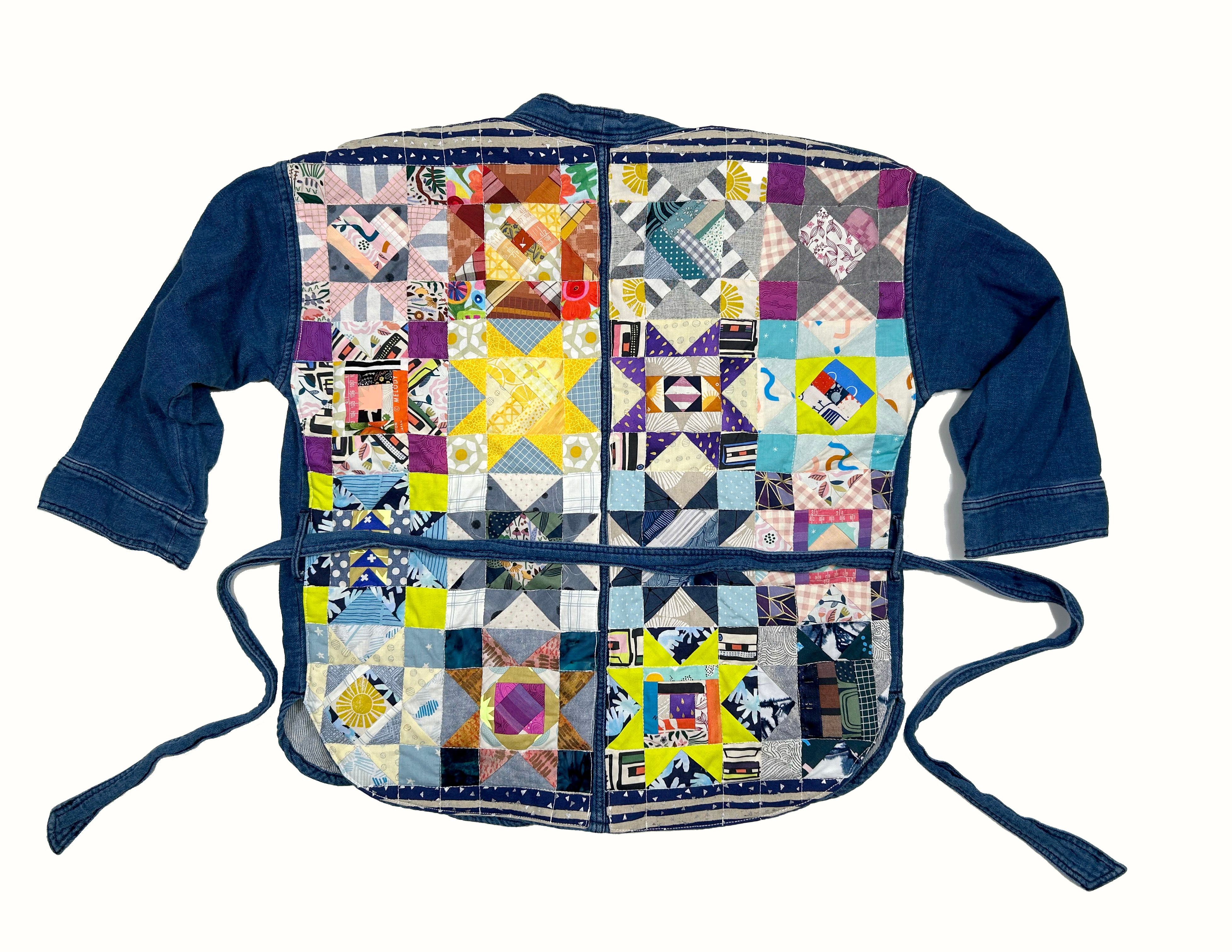 women's quilted patchwork denim kimono jacket: scrappy stars