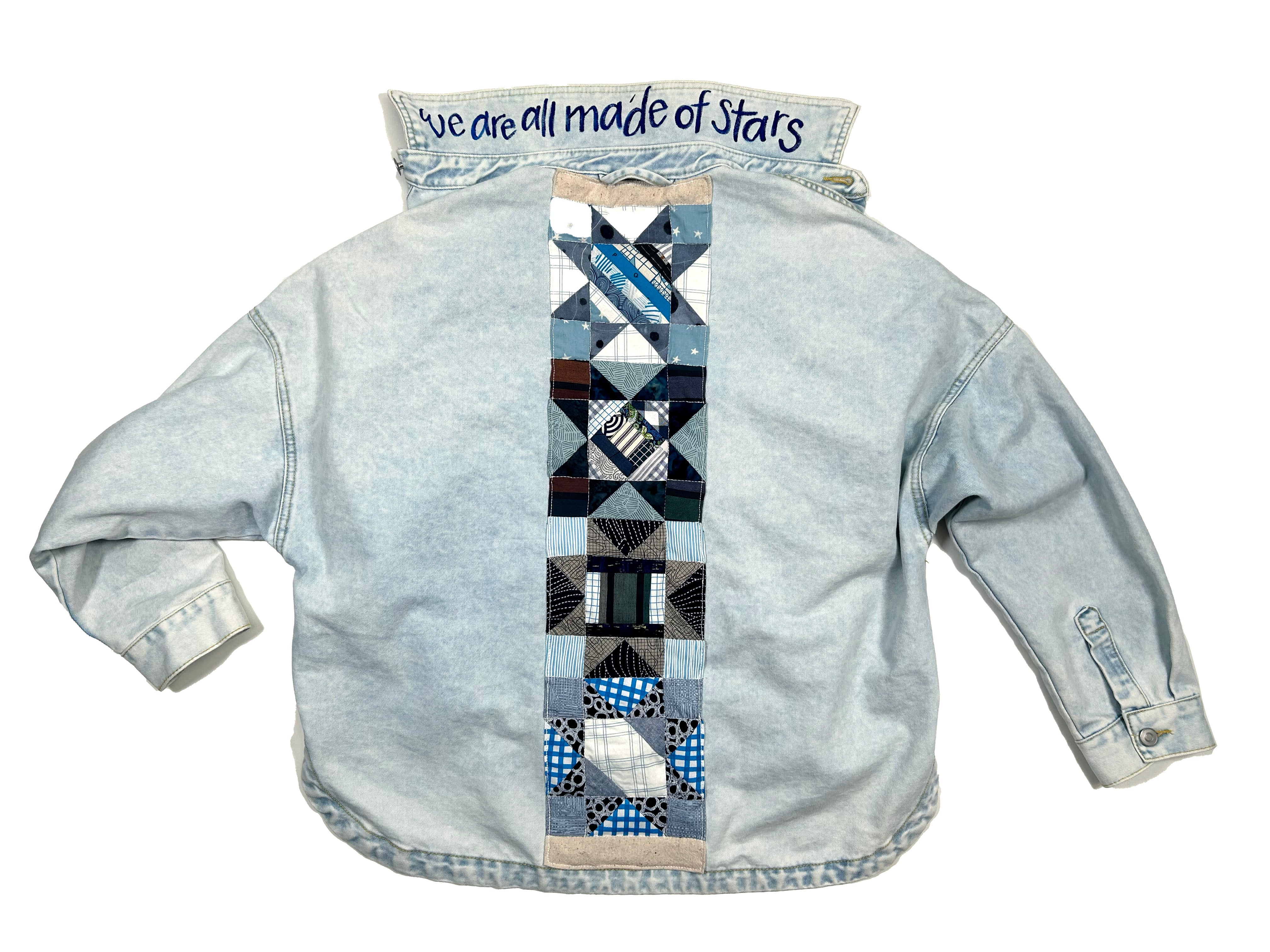 women's machine embroidered upcycled denim jacket: stars and sunshine