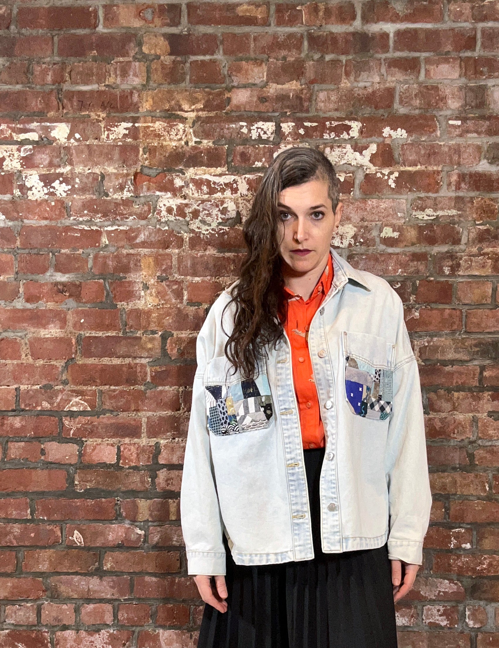 women's upcycled denim jacket: jersey appliqué
