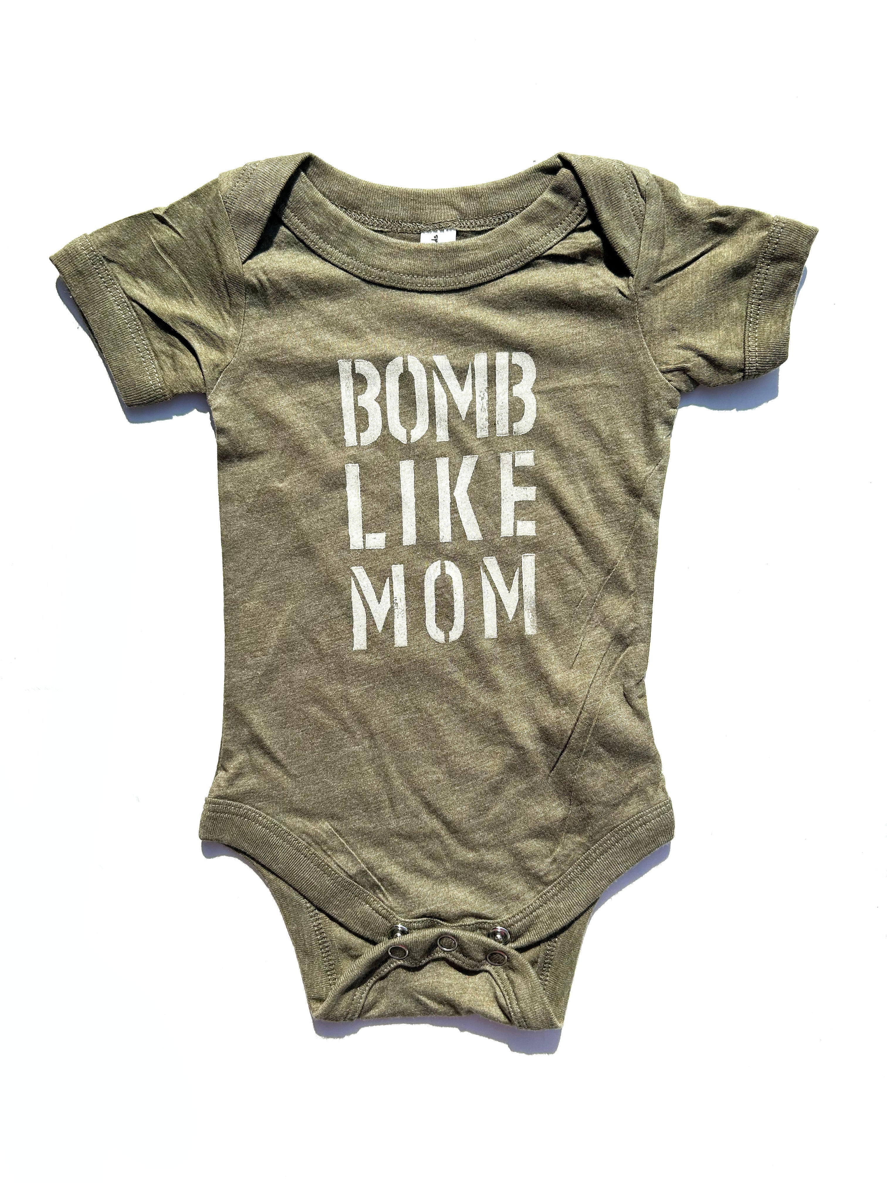Olive triblend one pieces are a blend of Polyester, Cotton, and Rayon. They are designed for maximum comfort and fit on infants of all sizes. Each one piece is hand block printed with fabric ink, dried, and heat set so they don't fade with washing and hold up well to the wear and tear of everyday baby life. For longest life, wash gentle cold and low dry inside out.