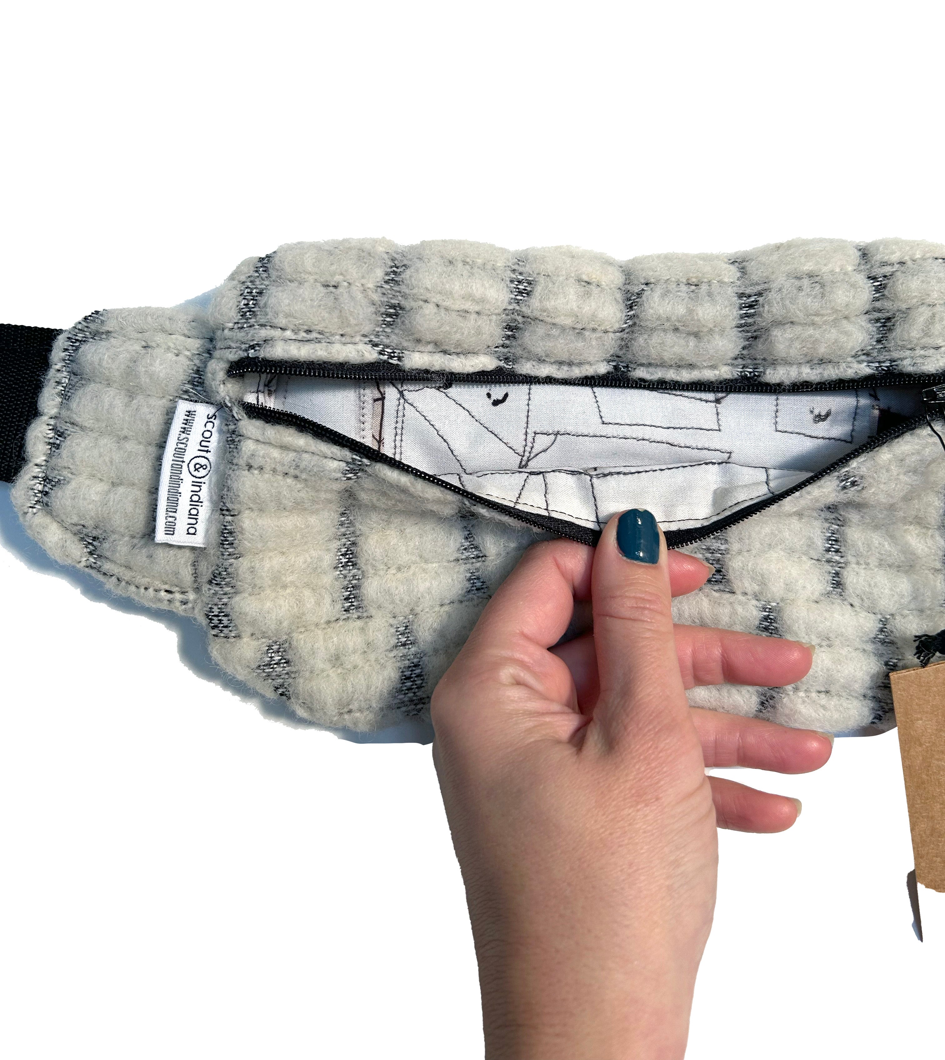 This comfortable and easy-to-wear sling bag has an adjustable strap and a side release plastic buckle making it perfect fit around your waist or across your body - or you can quickly and easily change your mind on the go. This bag was designed for people on the move but is slightly smaller/lower profile than our belt bag. This bag fits a half wallet, keys, and phone. There is a thin front zipper that opens the bag to reveal the lined inner pouch.