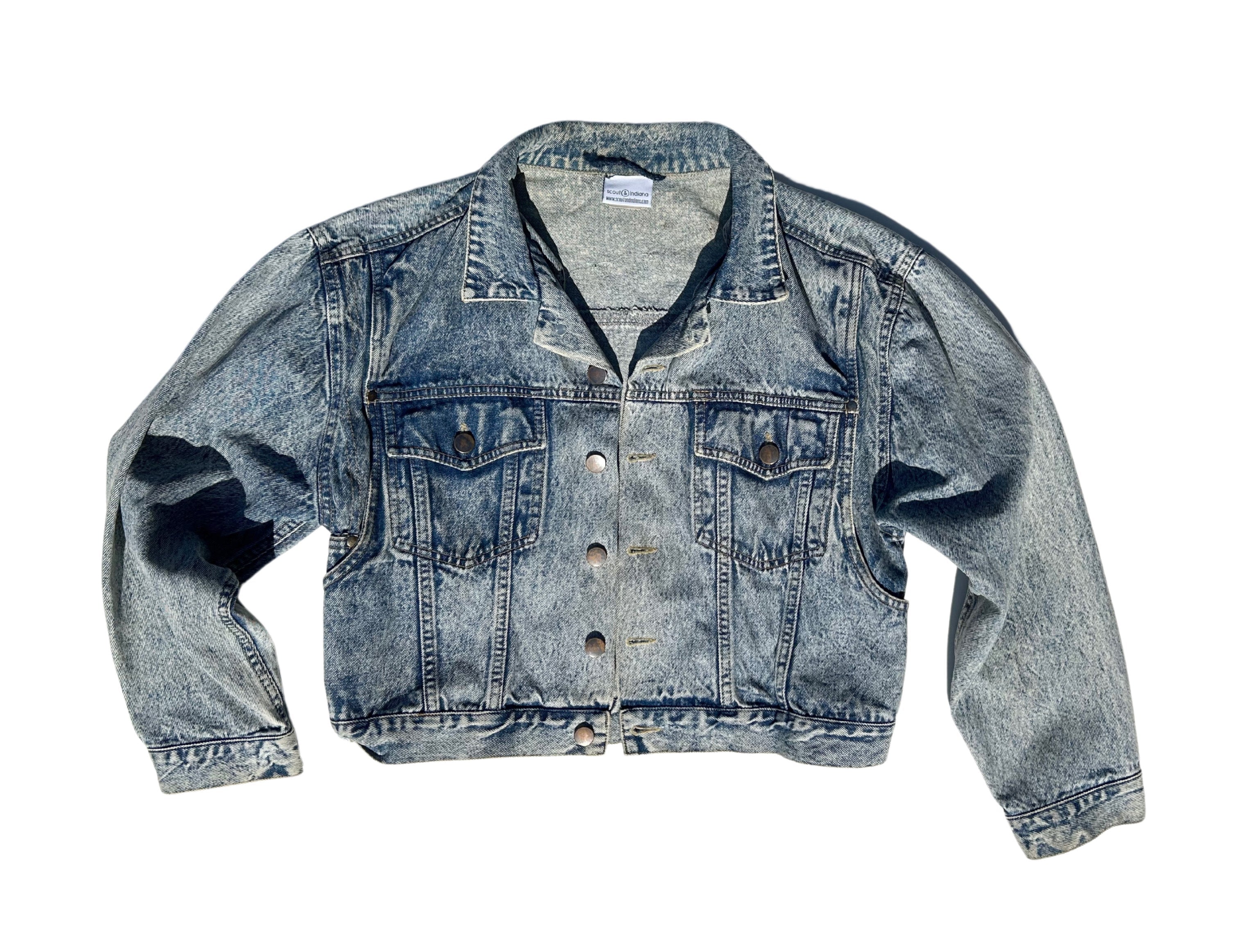 This is an upcycled unbranded vintage denim jacket in a size 35. It is an acid wash in an 80's style with some pleating/gathering in the back; there is also some decorative pleating in the front. It was sourced at a vintage market in Stuttgart, Germany. The fit is traditional but cropped. It is 100% cotton and has button closure with two top load pockets. The back back panel has machine appliqué graffiti that reads 'It was all a dream' made up of various quilt shop quality cottons. A popped collar reveals the phrase ' you know very well who you are' (Biggie Smalls) in a modern hand painted font.