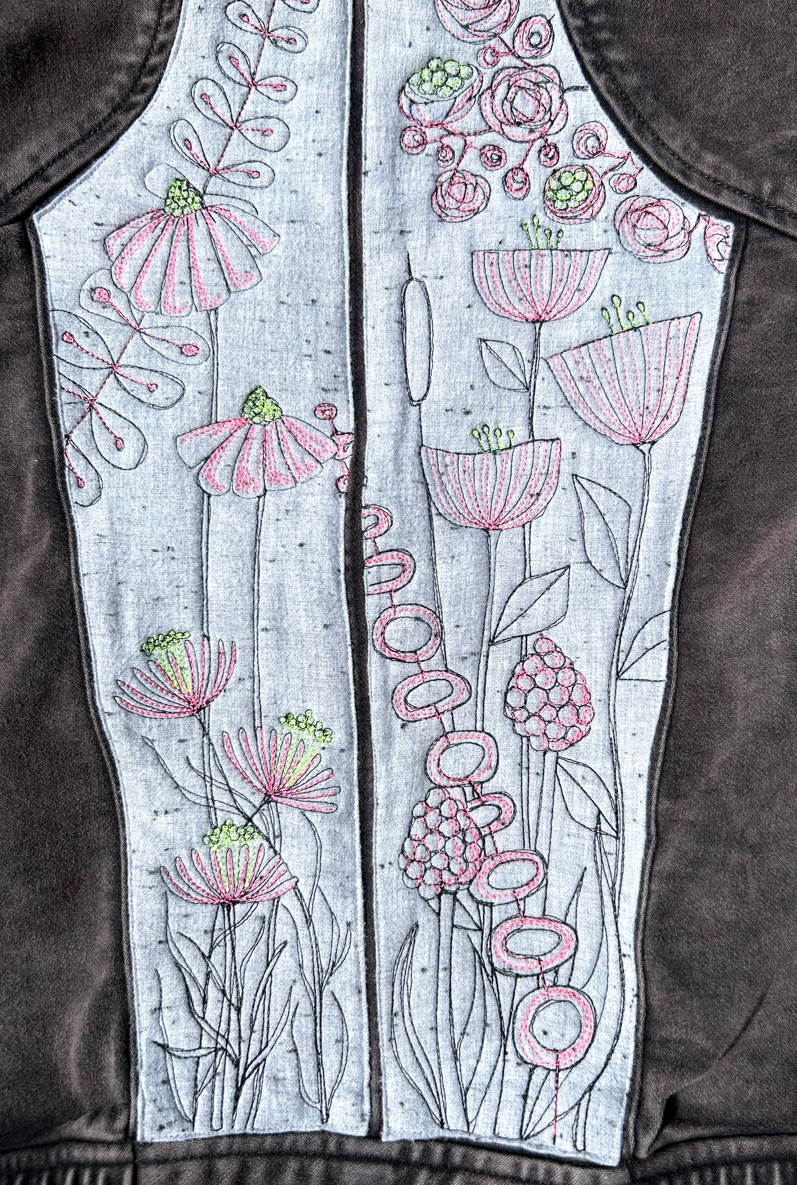 women's upcycled thread painted jacket: wildflowers