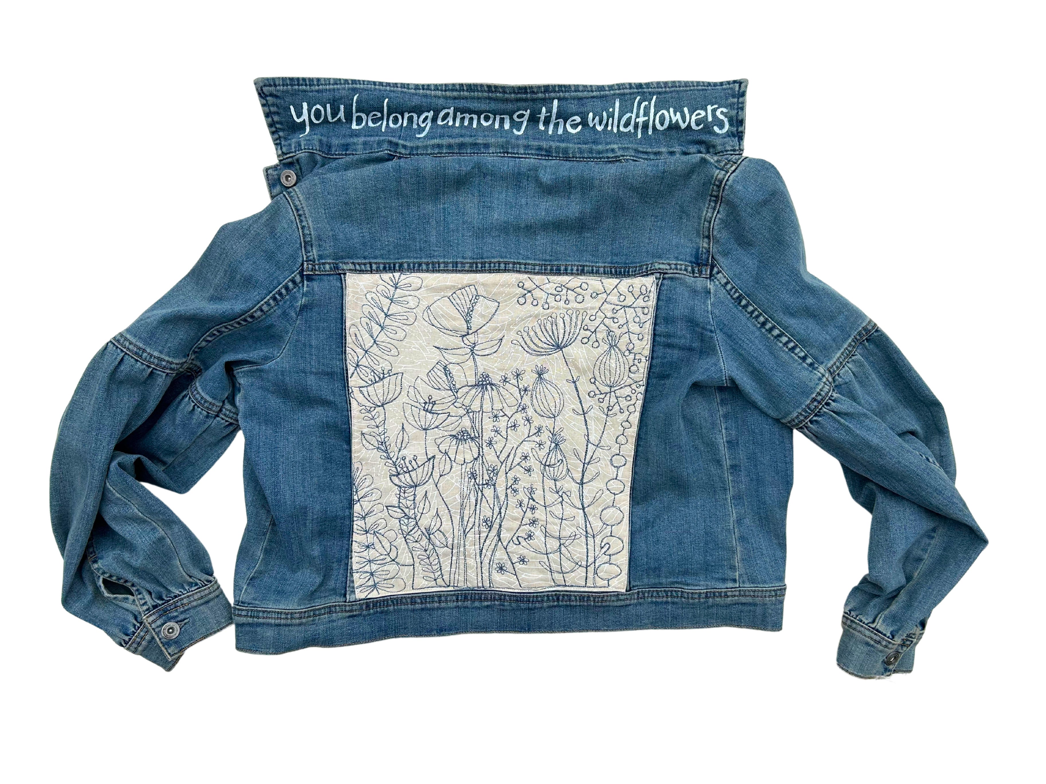 women's upcycled thread painted jacket: you belong among the wildflowers