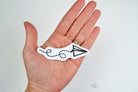 The patch is about 3.5" in length and about 1" tall - it can be positioned in multiple ways. The patch has iron-on backing, although we do still recommend sewing it on to ensure it's fully secured.