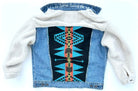 women's upcycled faux shearling denim: upcycled southwestern wool blanket remnant, turquoise, black