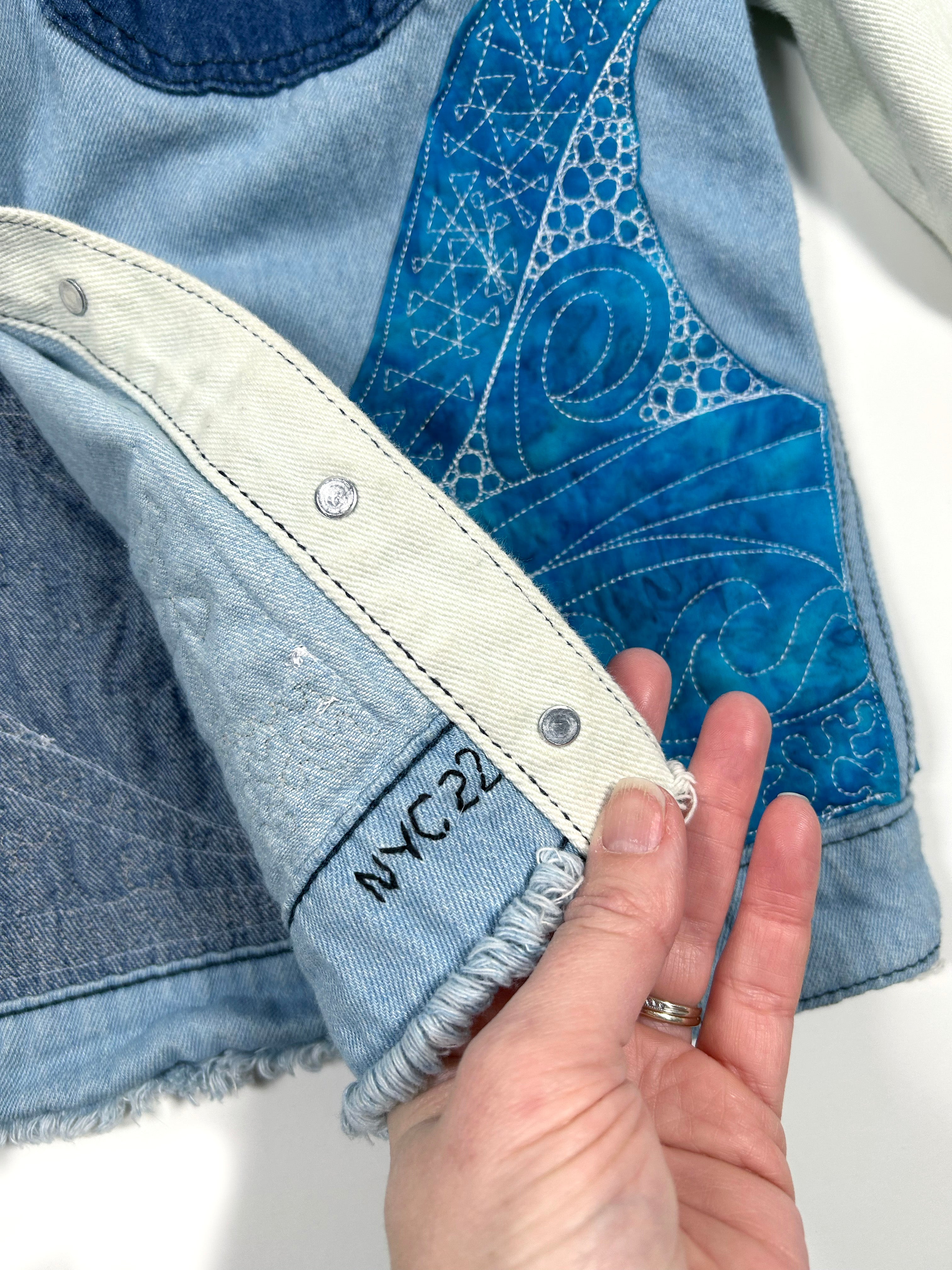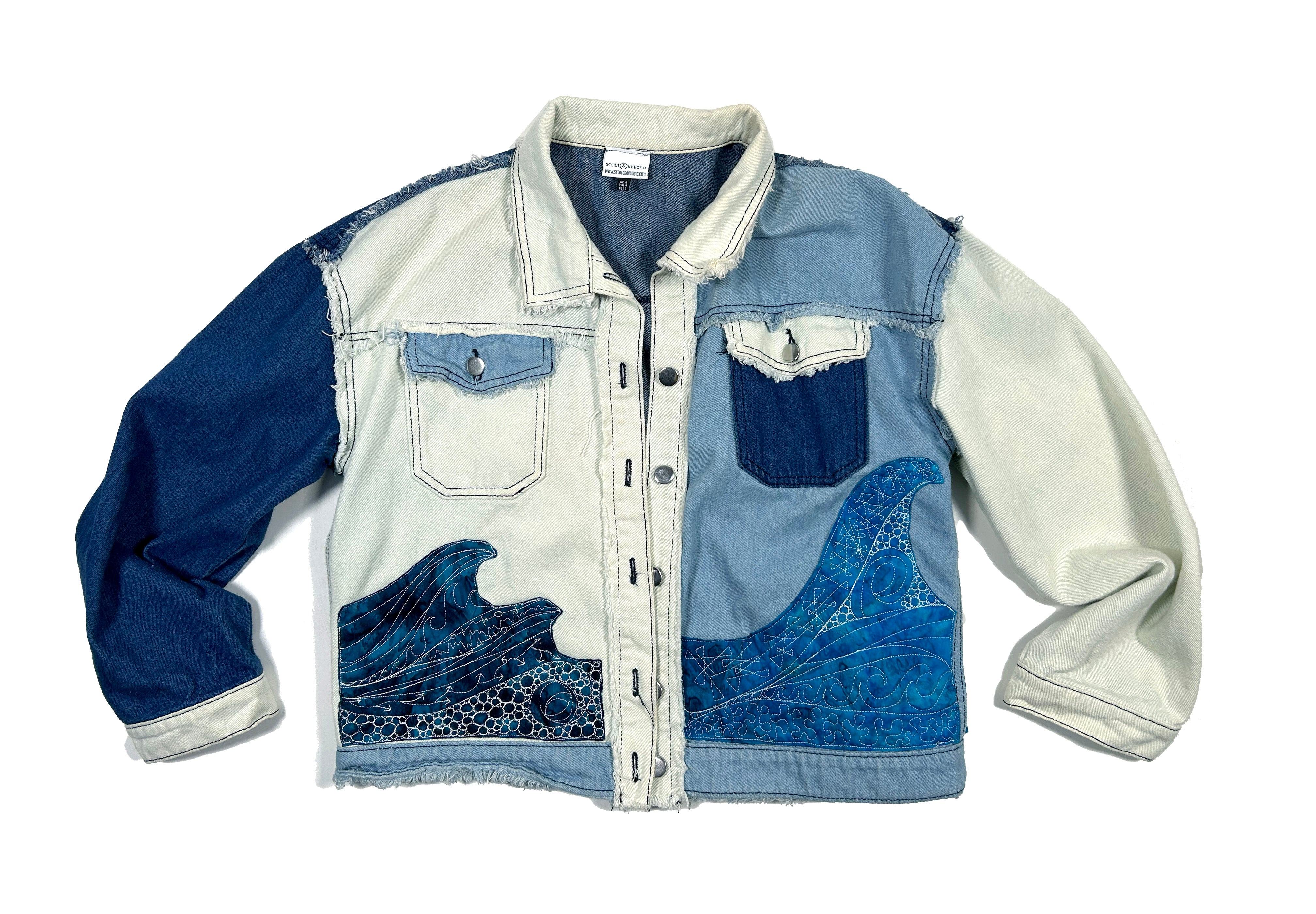 women's upcycled thread painted jacket: you belong among the wildflowers